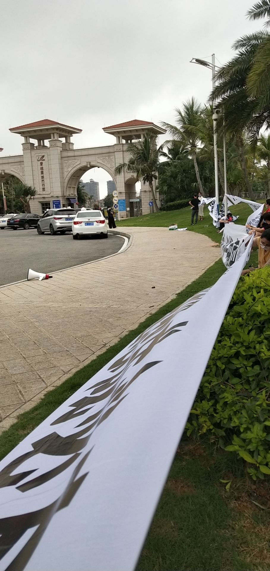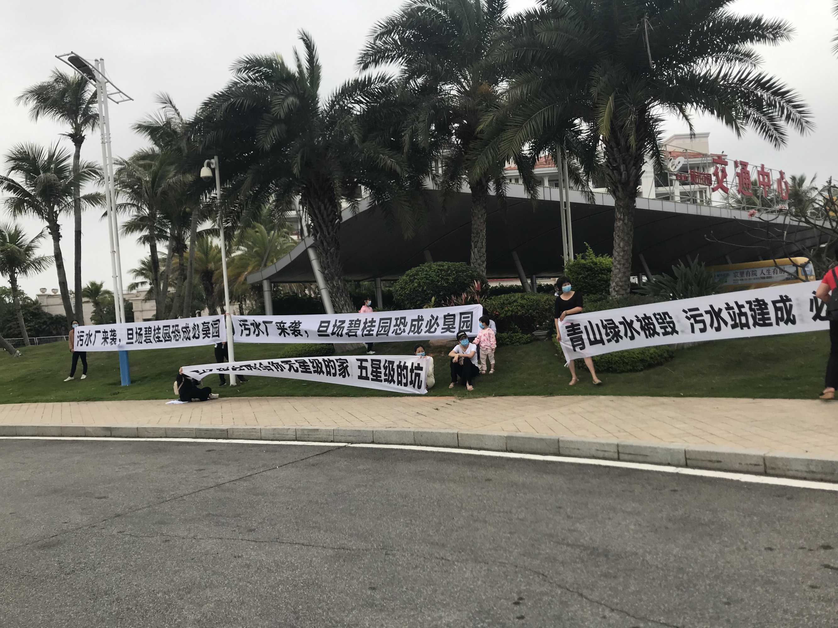 有点奇怪,又不是碧桂园建污水处理厂,怎么在碧桂园门口拉横幅?不是应该去区委区政府吗