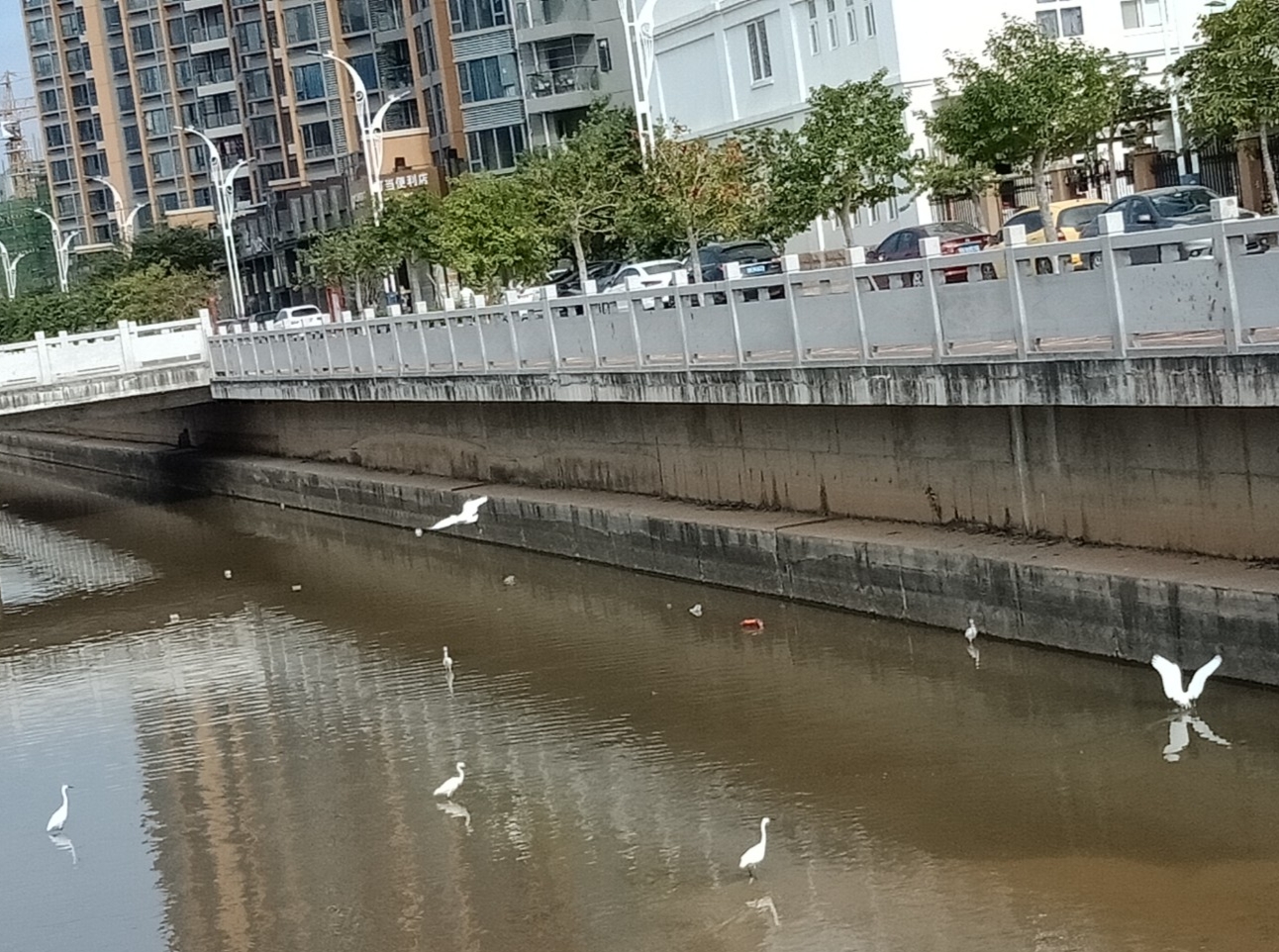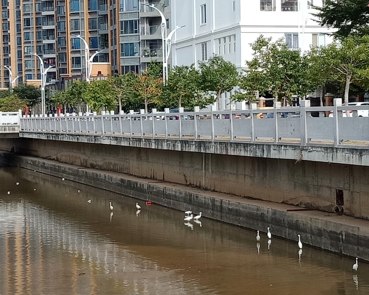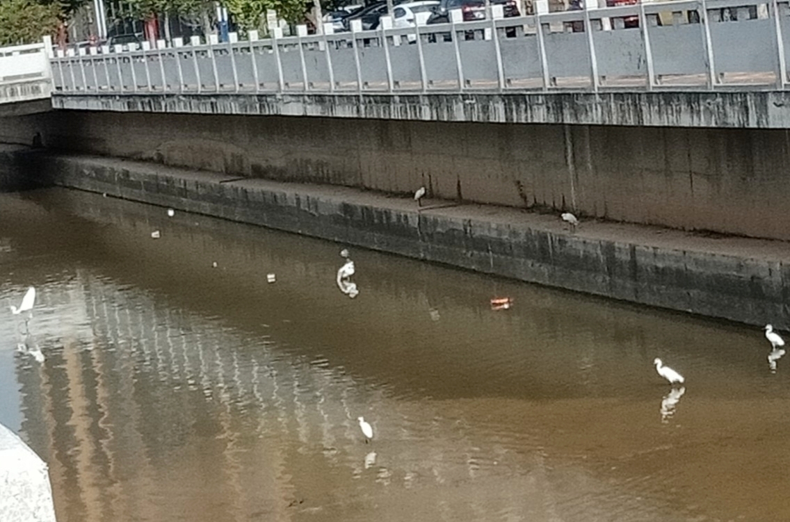你是在现场直播吗想不明白,人说人为财死,鸟为食亡,这观鹭阁对面这条排洪河,透过水面水下,左看右看,上看下看,没啥水中花水中鱼呀,不明这些白鹭与其它些鸟在这磨蹭寻觅些啥??