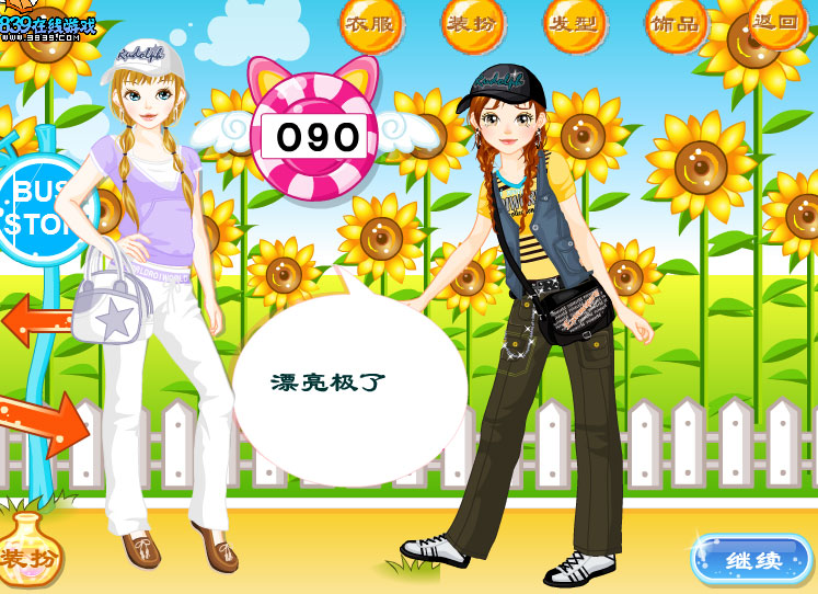 游戏简介:点击右下角粉色按钮开始游戏。(如果不能玩,说明游戏没能完全载入,刷新一下页面,等游戏完整载入后再开始即可)按左下角的“hint”按钮,按照这4个MM来打扮你就能得高分啦,上面的5个按钮分别是“衣服、化妆、发型、首饰、重来”。打扮好,按左下角的瓶子按钮,评委会为你的杰作打分。如果你喜欢,点右下角“print”按钮可以打印出你的作品!