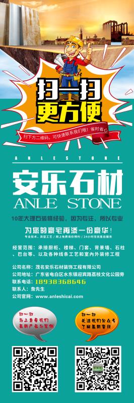 image.jpeg image.jpeg 好消息!卖个广告各位准备装修豪宅的兄弟朋友们看过来了…[耶]安乐石材,专业加工各类大理石橱柜、窗台、背景墙、门槛、楼梯、门柱等,价格公道,造工精细、质量保障…[强]需要咨询的赶紧V我吧,或者拨打联系电话:15218328416[亲亲][爱心]网站地址,http://www.anleshicai.com/products/?from=groupmessage&isappinstalled=0