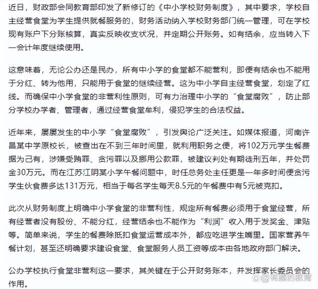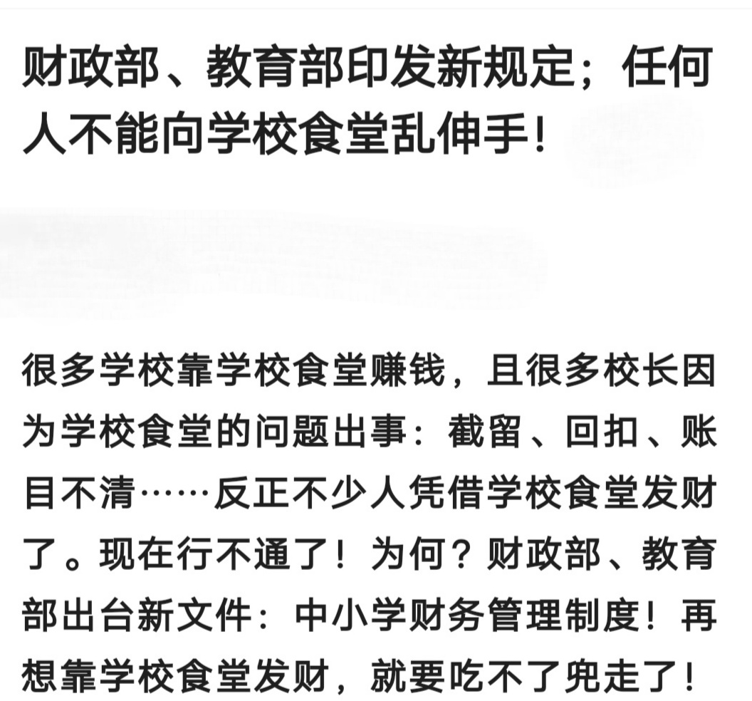 转帖 财政部、教育部印发新规,任何人不能向学校食堂乱伸手