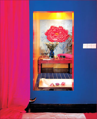 整间的红色墙面就像走进了另类的地带。