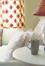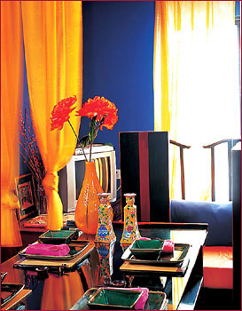 红色墙体、窗帘与深色古典家具的搭配,也不会感到沉闷。