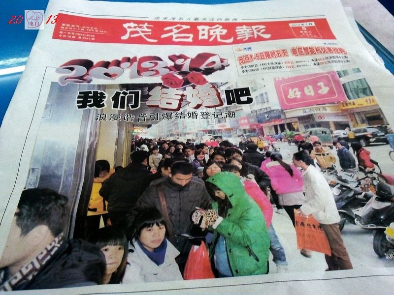 老 老颠 大学二年级 注册 2005-11-23 消息 786 反馈评分 0 点数 1 2013-02-02 #13 水东3 《201314-爱你一生一世》 浪漫谐音引爆结婚登记潮。 [attachmentid=307902] 附件 N3416.jpg 439.3 KB · 查看: 553