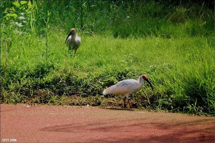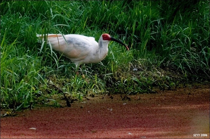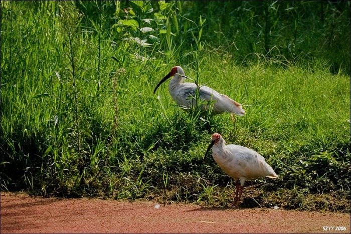朱q,濒危鸟类,被列入极危物种,曾广泛分布于东亚地区,如俄罗斯、朝鲜半岛、日本和中国,上世纪30年代以来,由于环境破坏,种群数量锐减,并于70年代末相继在俄罗斯以及朝鲜半岛灭绝。 中国1981年重新在陕西洋县发现世界仅存的7只,经过二十几年的不懈努力,目前朱q总数量已经达到约800只左右。 使用镜头:Minolta AF500/8折反镜头 拍摄距离太远,约为50m-80m,全部为裁图