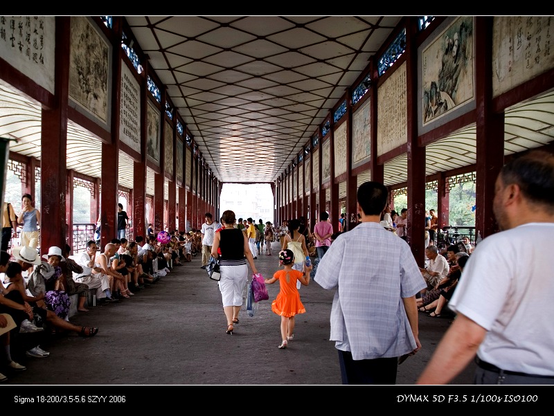 桥上坐满乘凉的人,非常壮观。我感觉桥上的温度比周围至少低2-3度