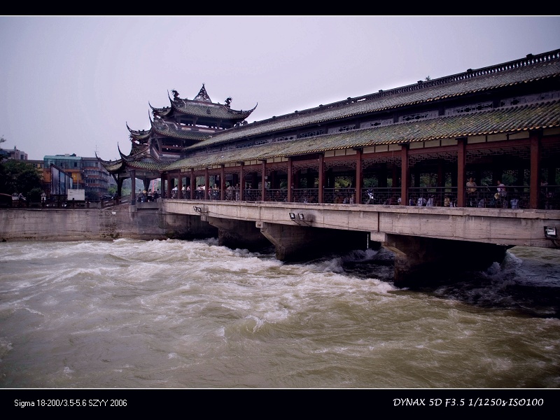 肚子饿的咕咕叫,顾不得玩,先要找点儿吃的,景区右侧迎面看到一座雄伟的古廊桥――南桥,打听了一下,说过了桥有很多小吃店