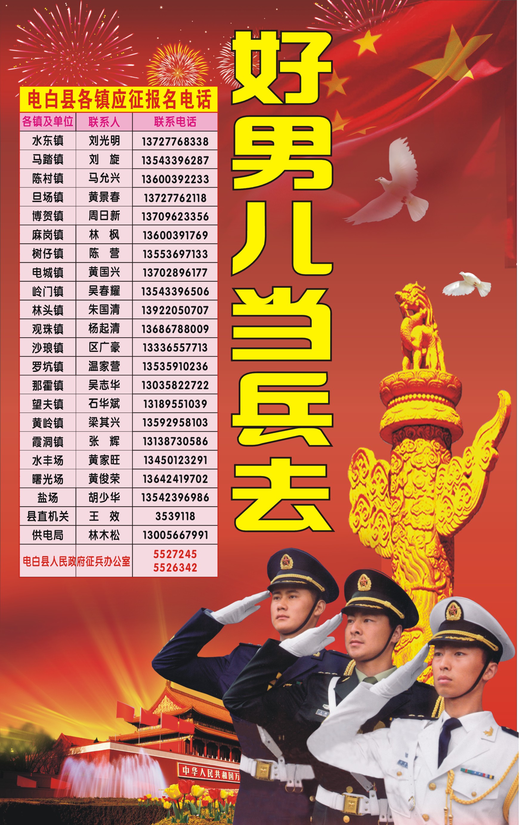 电 电白县人民政府征兵办公室 幼儿园 注册 2008-10-22 帖子 16 反馈评分 0 点数 0 2008-10-22 #1 [attachmentid=192168]好男儿当兵去[FONT=黑体] 附件 征兵1.jpg 440 KB · 查看: 326
