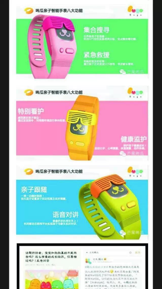 “瓜亲子智能手表”,是国内首款针对儿童设计的可对讲型智能手表,适合3-12岁的孩童使用,搭配网站平台和手机APP,实现与手表的智能对接,准确定位孩童位置,并实现对讲功能。