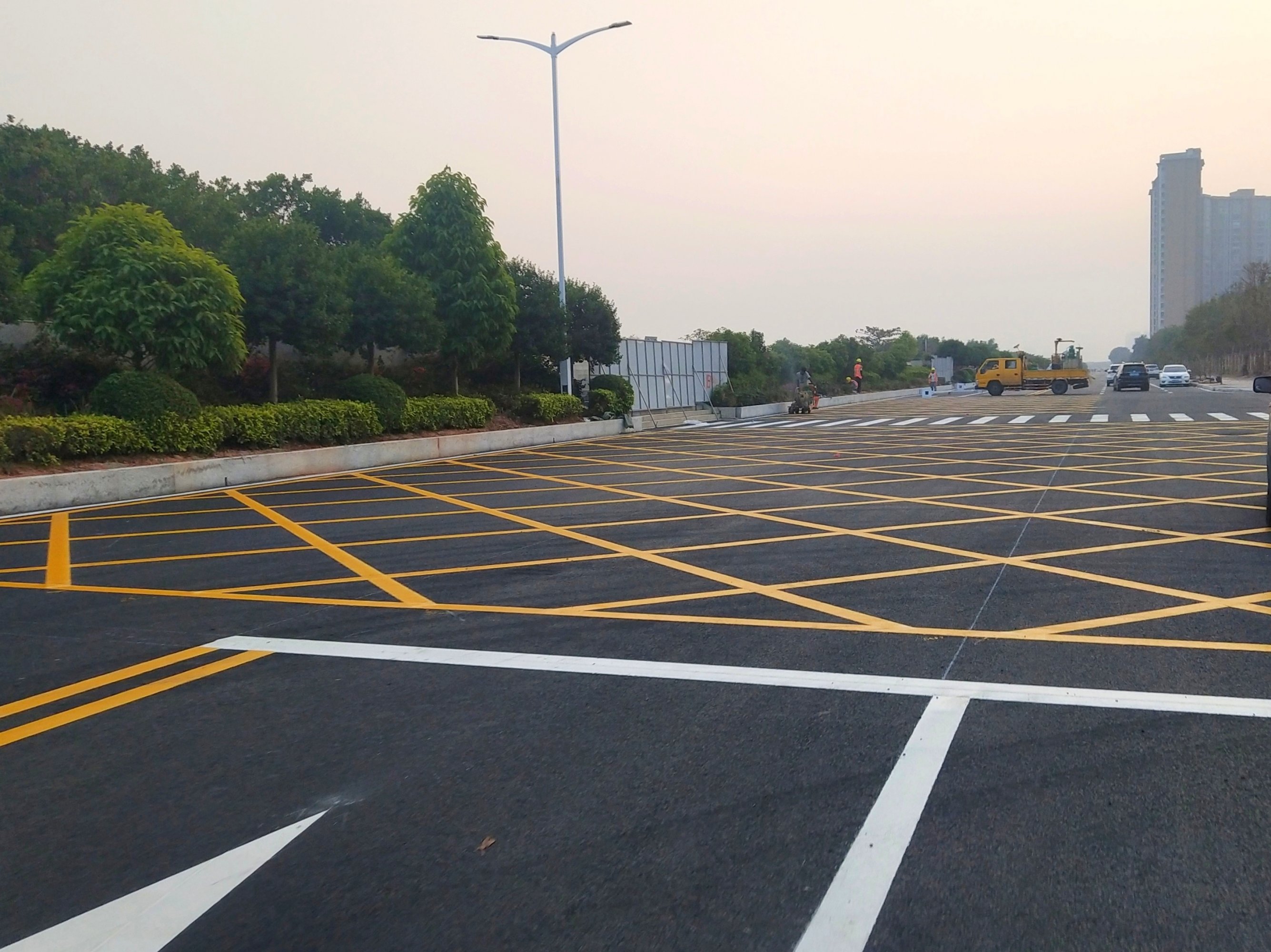 还有在装零星的路灯与些在画人行班马线、、