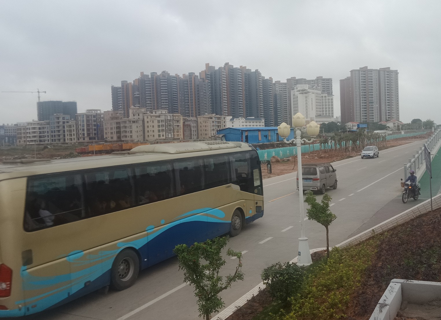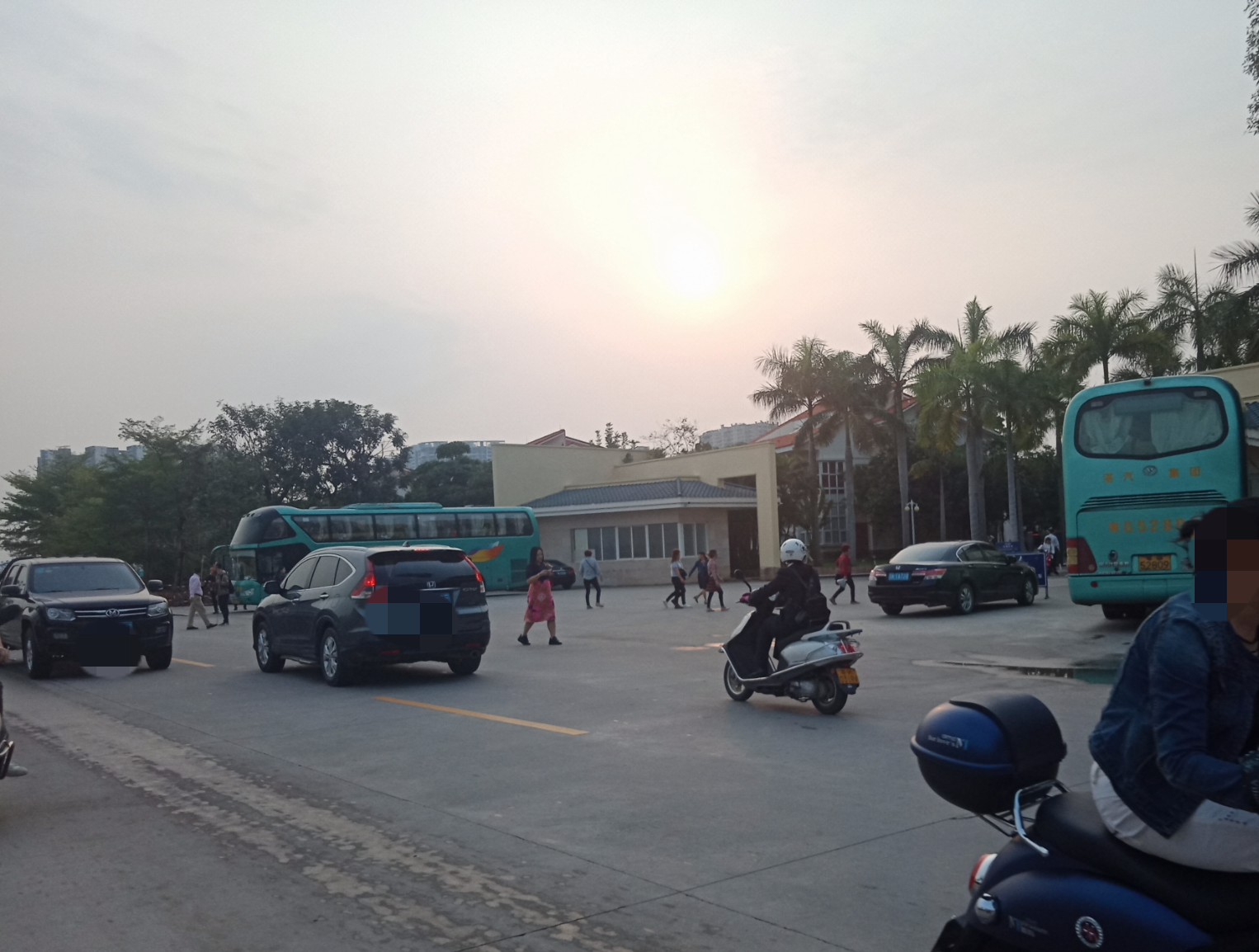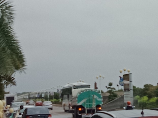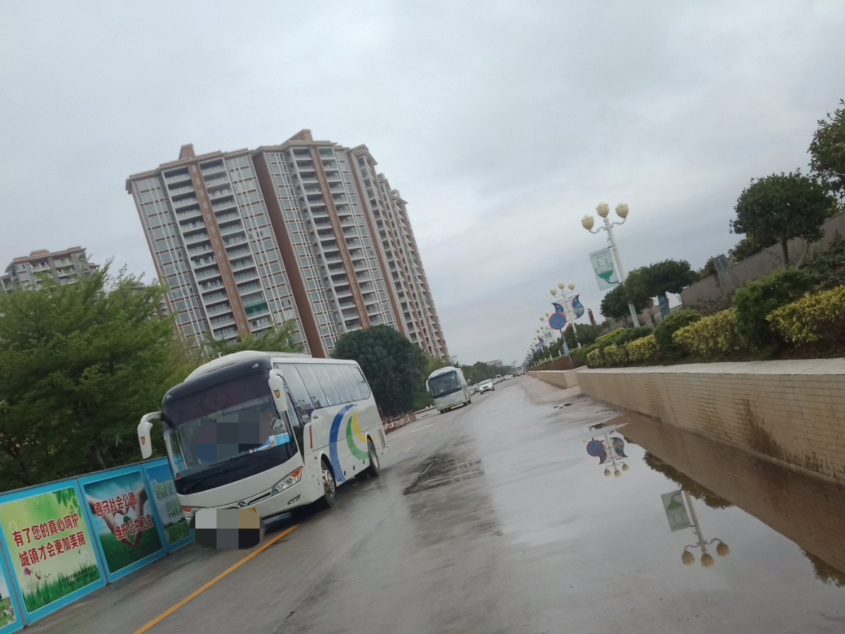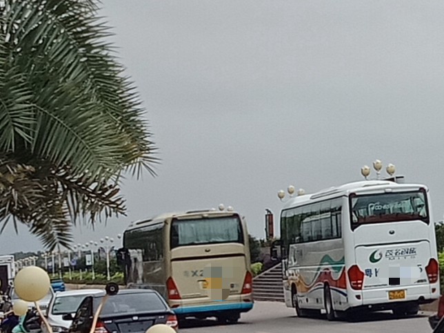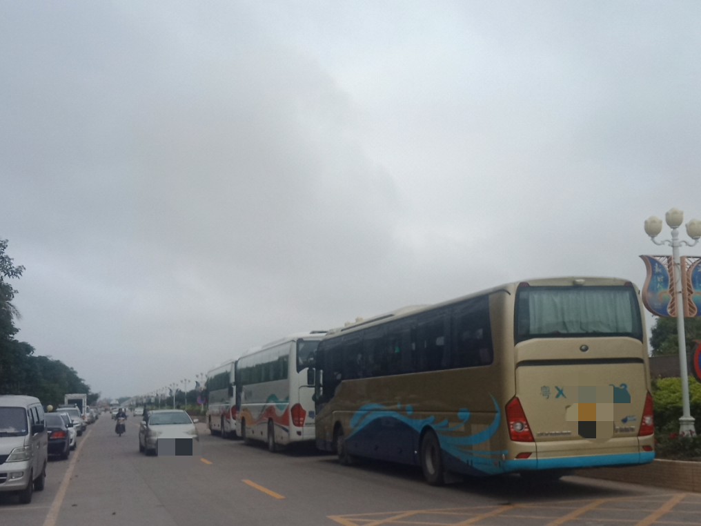 时间流逝大部分晨运的人也渐散去,瓦也下去拿摩,见有一俩辆大巴从海堤路过,也驾摩过那边吸吸,也不知从哪边来的,诂还会去一滩那边或浪漫放鸡岛等那边吧?这只是个中途站,但从这去两边好在也不远~ 过去亲水平台那边已见有三辆游巴停在那~