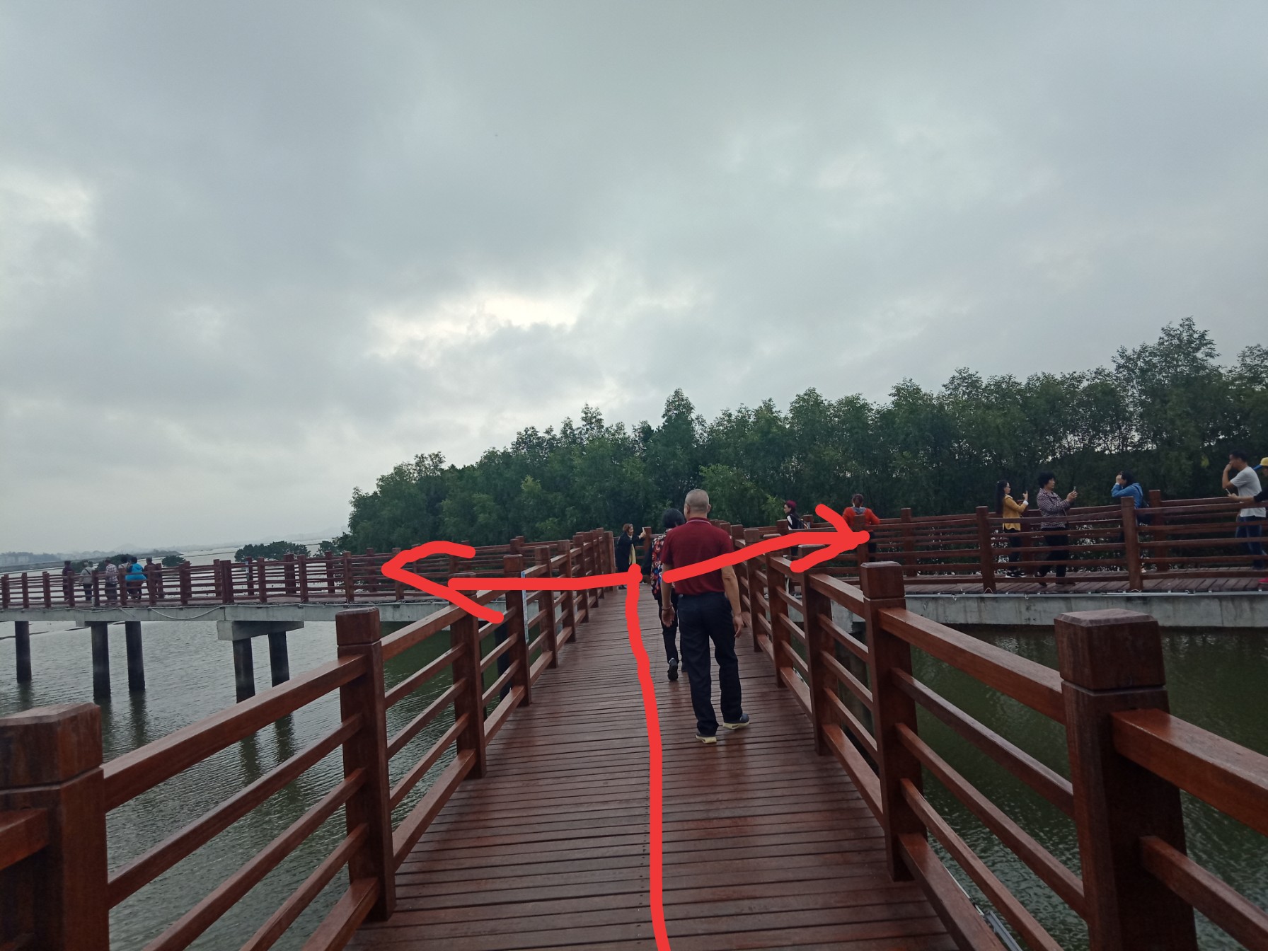 走到这个位置又要说下,如果直走就可去那观鹭阁公厕,如游巴在那停更好,如在亲水平台那边,走海堤绿道去即可,最紧要解决人有三急,如向右边走,可达亲水平台,但离洗手间有点远了,如无三急则无访,走哪个方向都行~反正知道集合点在哪就行~