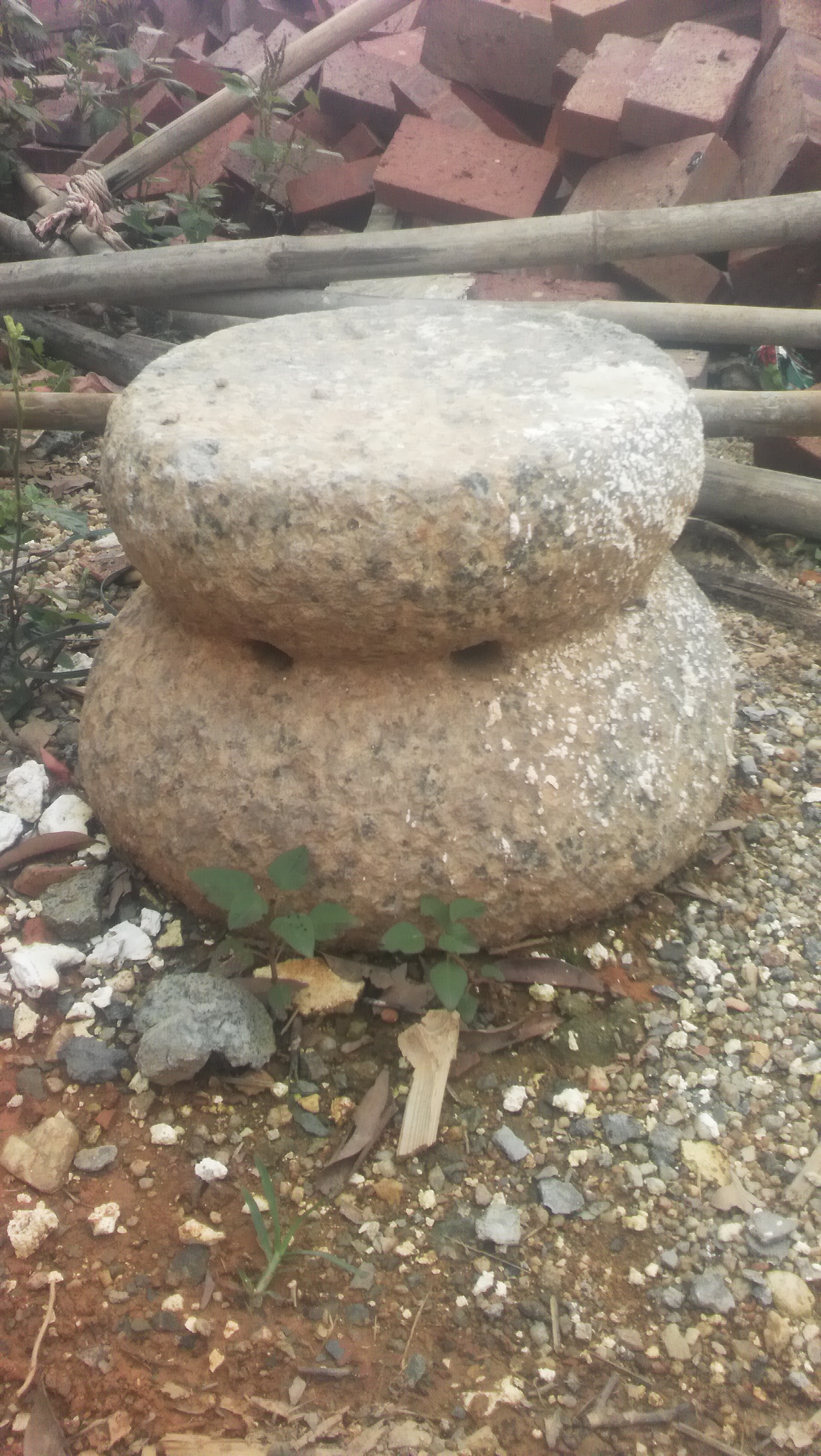 伤心的东西,我想问主人多少钱才肯卖,主人说:当:年修完罗坑水库后挑回大衙来的,我不敢再说买了,这个是八个洞。多少个洞就要多少个人一起来使用。想象一下高州水库的雕塑是三个洞的。问了老人那东东只有双数洞,没有三个洞这个东东。