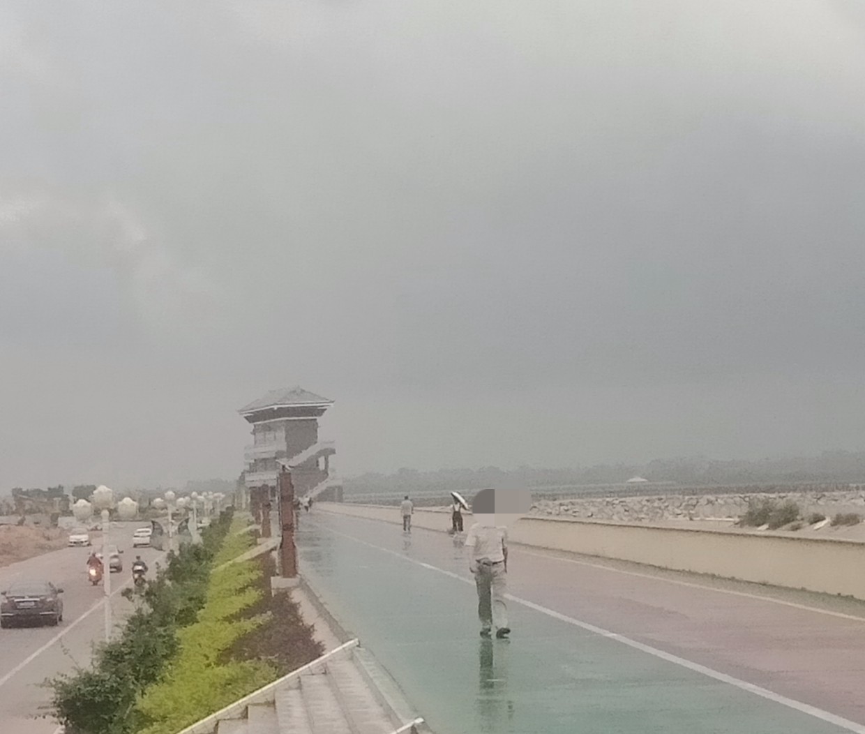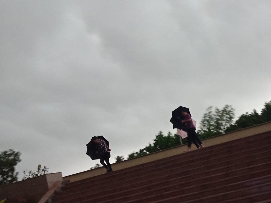 雨越下越大,没法只能将摩停靠在一边走道避雨~但现又停下~天空乌黑黑~乌云密布~兼又下点微雨~ 后吃点早餐又回返见有旅游巴,幸见下车的尊爱游客有拿雨伞,缩在观鹭阁下,再后见慢慢顶着风雨走向游巴,期盼没有淋湿他她们,也不知过后的行程有否影响,不过有段时间天晴了一下,期望不影响行程,最重要不给淋湿!