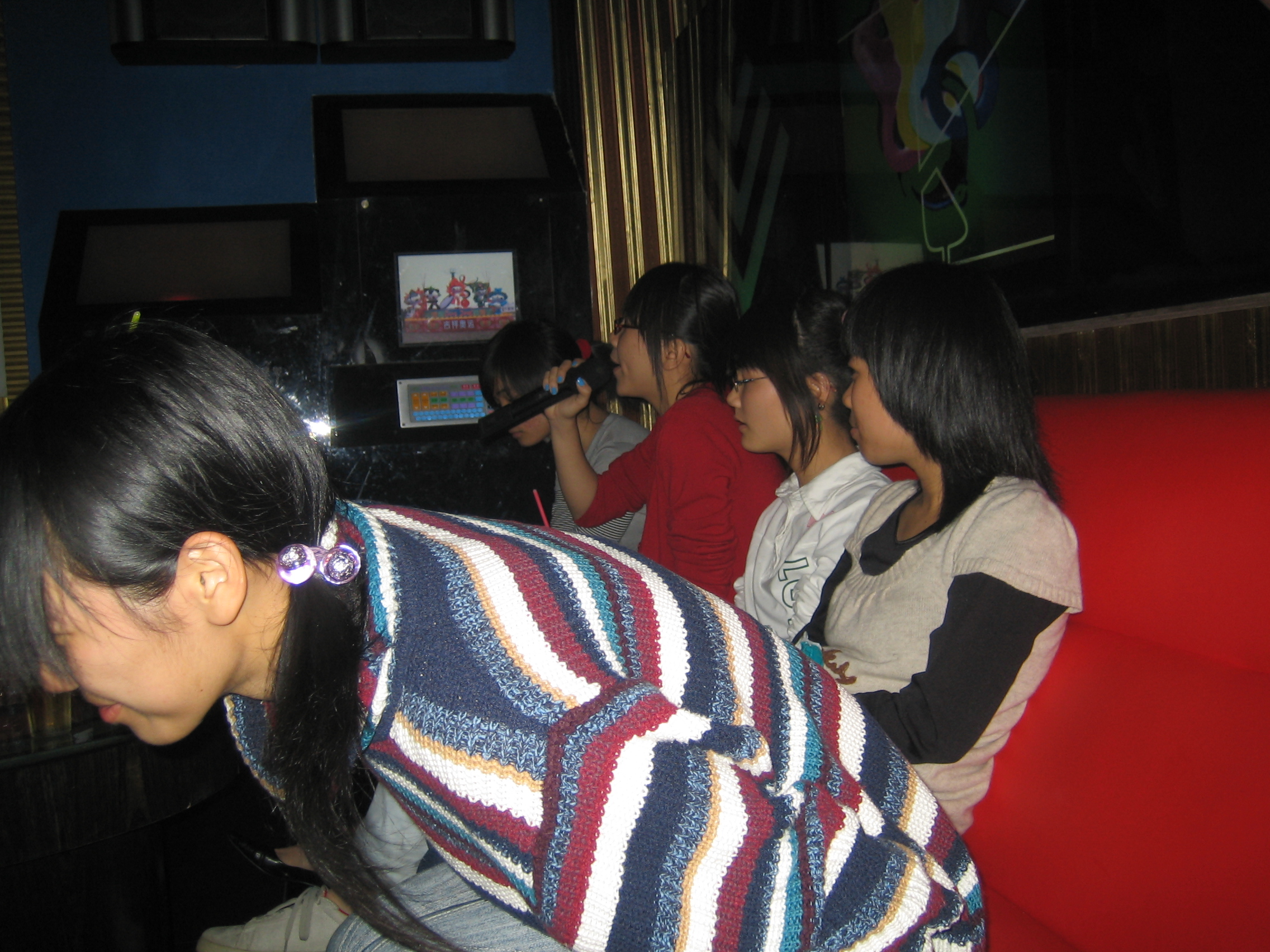 哇`哈哈哈哈``很爽`于是我们大家就一起给她唱生日歌```