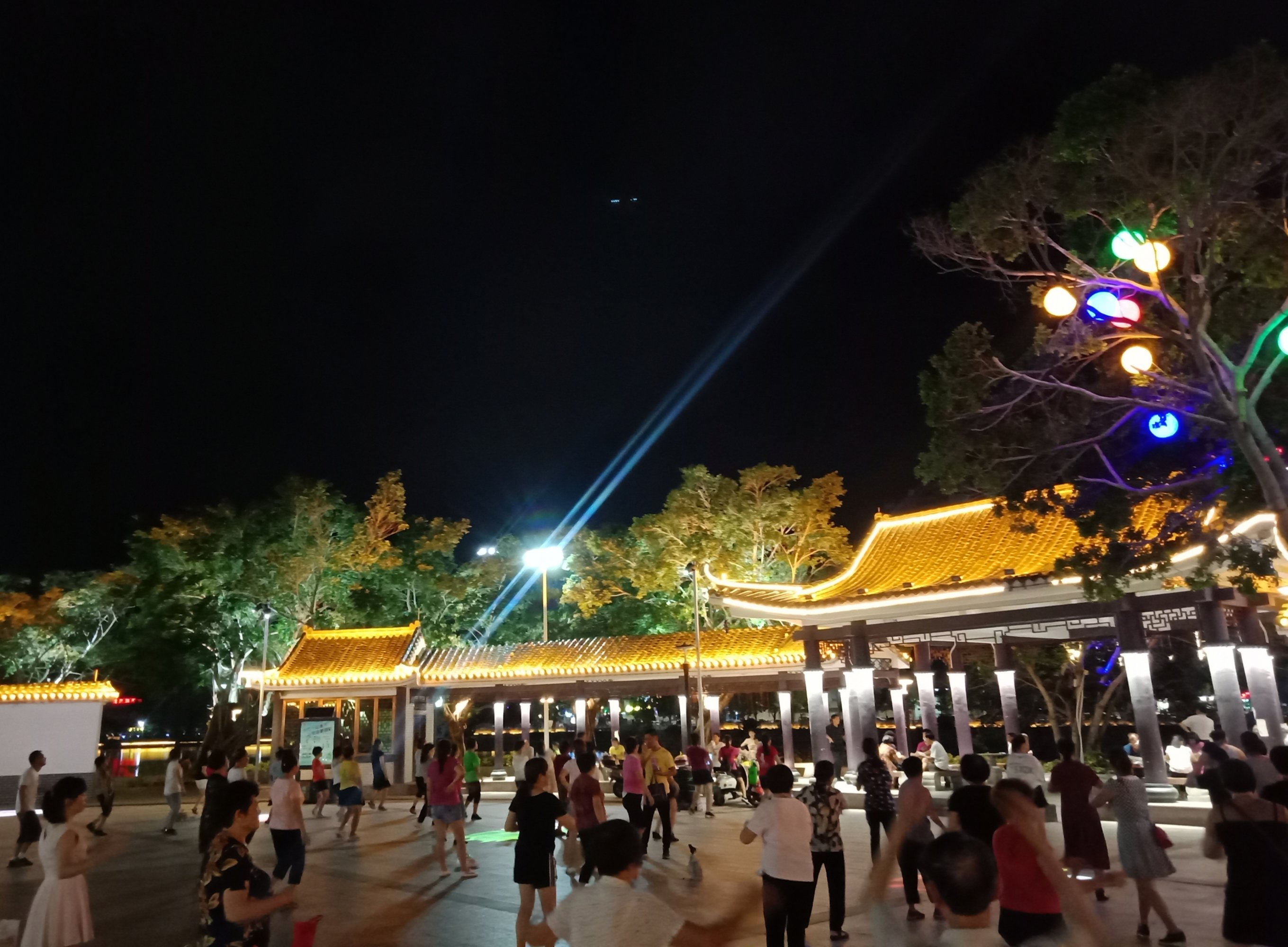 以个人看法各有千秋,也有好些男的加入,先说下东湖的广场舞,舞姿音响整体等相对整齐点,每条队伍分隔的比较宽点,音乐声音也没那么杂乱、、、