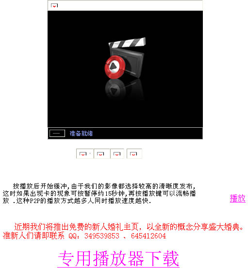 QUOTE(水之都 @ 2007年10月21日 Sunday, 12:50 AM) 打开P2P点播页面之前要下载QVOD专用播放器 网络点播地址: http://www.paipai0668.com/dl [snapback]1977466[/snapback] 打开上述网址,显示的页面是这样子: 结果:无法播放。