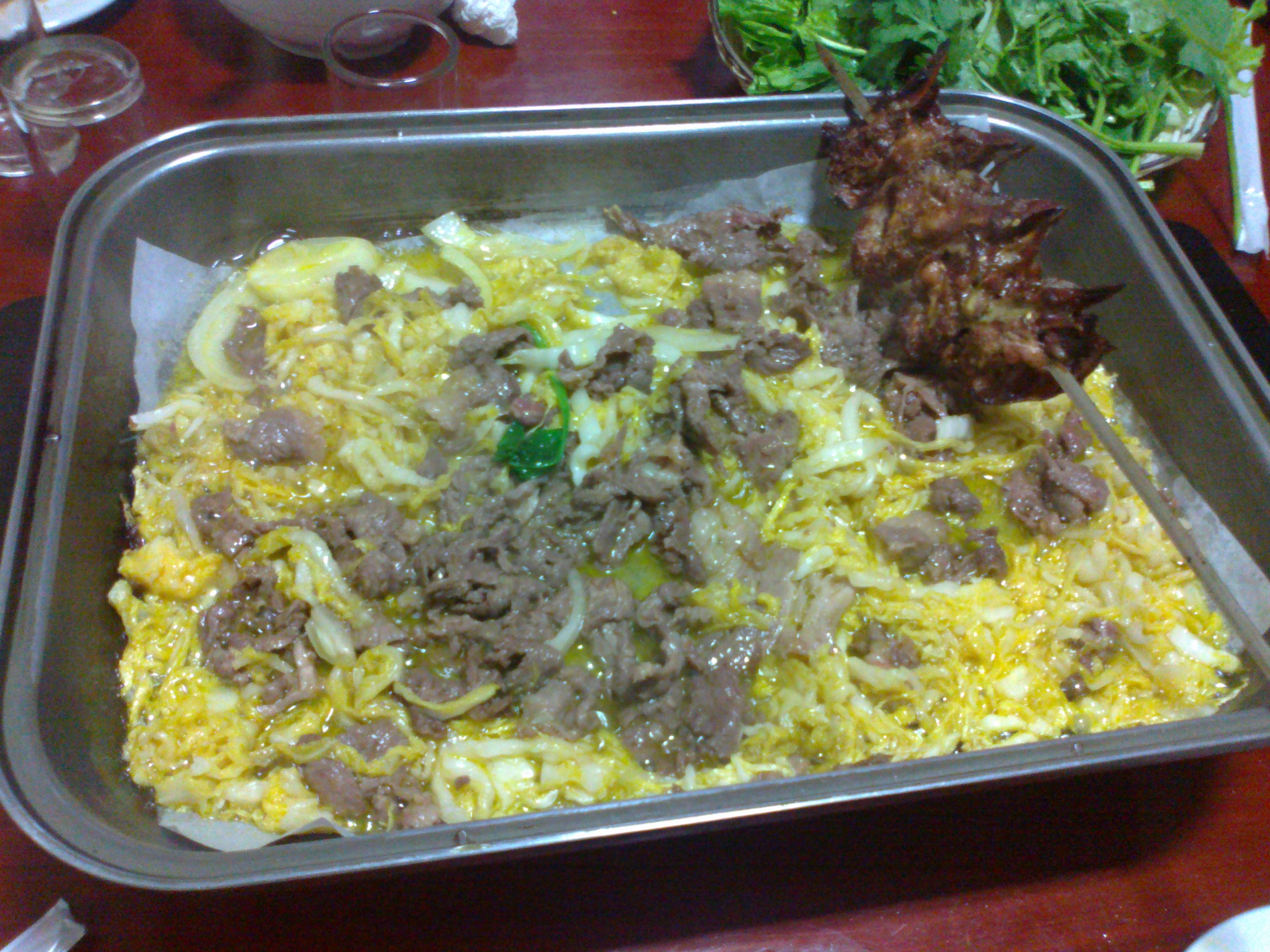 东北烤肉(纸上烤肉),上东北,吃烤肉,自然是少不了吧,不过烤肉其实没多少特别之处,纸上做饭算是有点特别吧,直接用电磁炉来的,上面加了一张白纸,应该是锡纸之类的,为之 纸上烧烤.