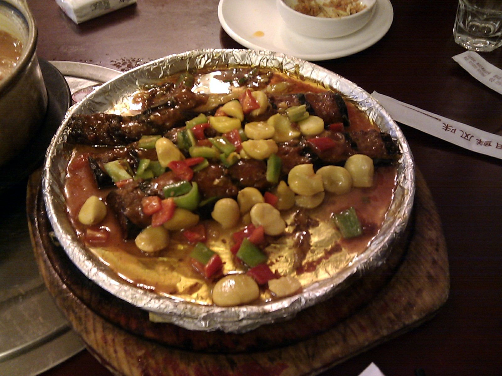 这道菜好吃,好像叫板栗茄子吧, 茄子里夹着的是肉来的,味道不错.