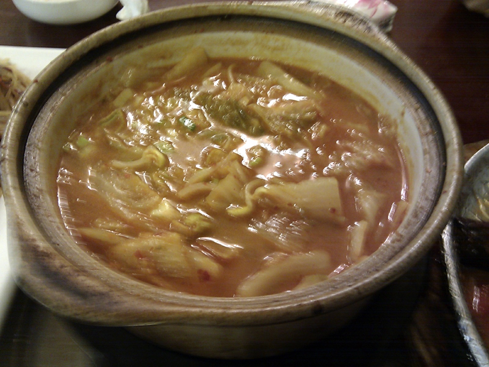 这个好像是东北一个特色,叫什么酸菜汤来这,就是大白菜加猪肉啊,粉条啊之类的.东北人都爱吃,我觉得一般般.东北的杀猪菜估计也是类似的做法.