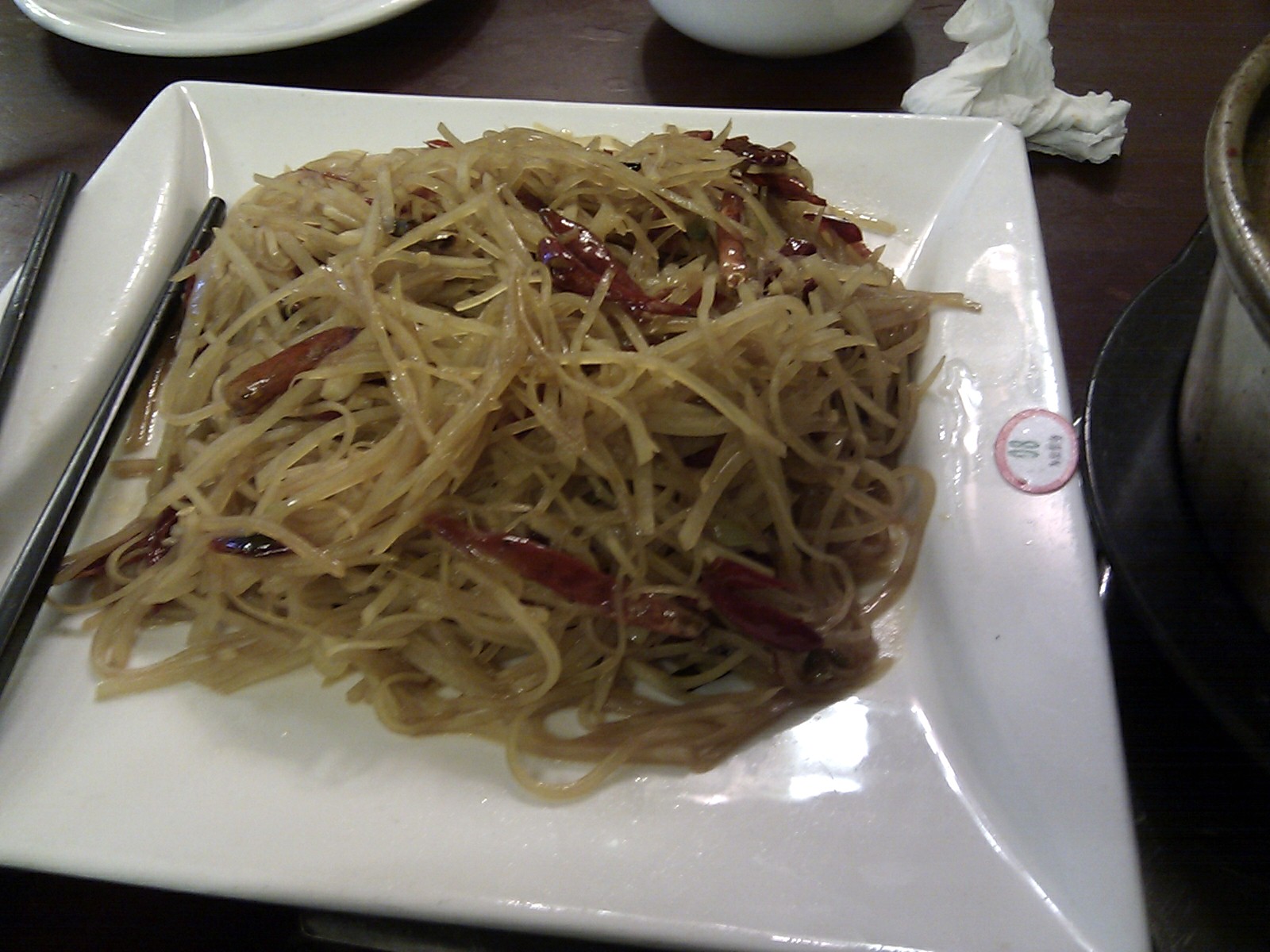 凉面,忘记叫什么名堂了,凉的,算算的,带点甜味的样子,滑溜溜的劲道,冬天里吃凉的其实还挺爽.