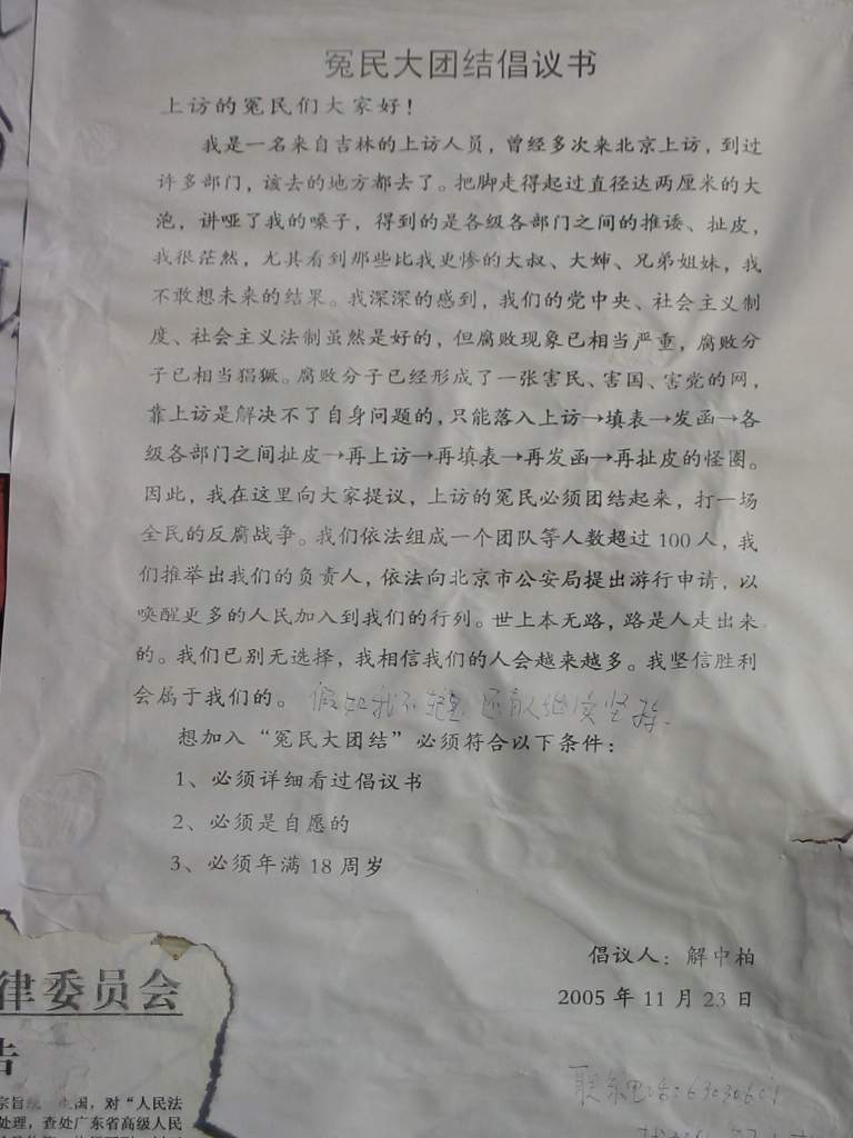 在北京的南二环和南三环之间,火车南站附近,有这么一个村落,因为聚集着从全国各地赶到北京上访的大量群众,而被称之为“上访村”。这个上访村的地理位置属于市中心的范围,因为离这不远有国家信访局和全国人大信访接待室。