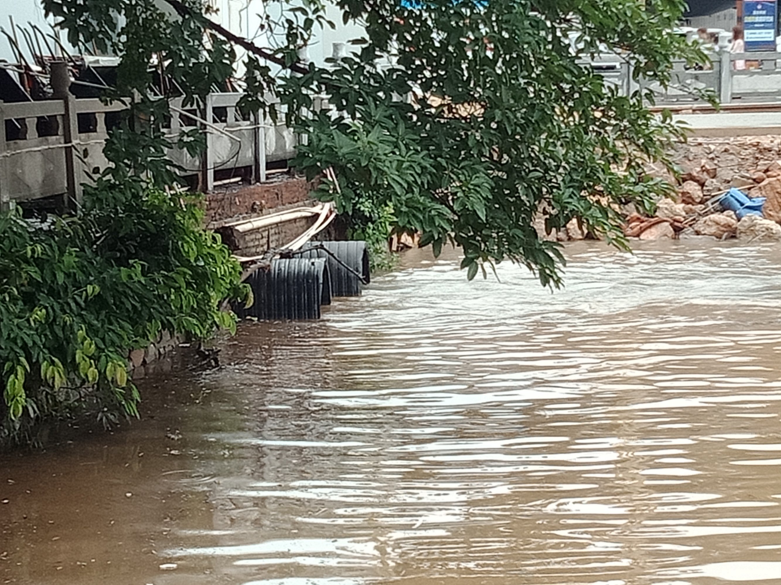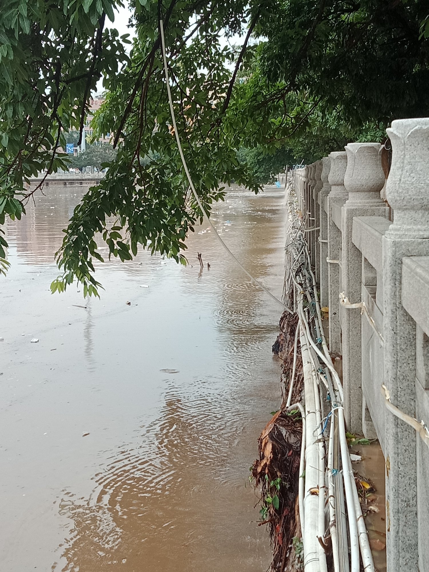 东湖与上排~路口~排水有点急,有向东湖这边排水(上次也发过)~有些摩托不小心过给拌倒~ 还有海滨路两侧小段有水浸~ 还有海堤路小段有水浸~ 政法路小段~还有解放街小段~新湖二~还有些吧?没一一去看~车况车速好点还勉强可冲过,不过还是建议小心点~摩托就算突然死火可推着走~