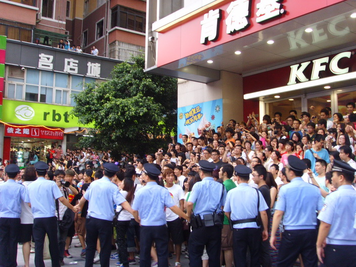 据目击者称,7月25日下午三点左右,陆续有人在江南西地铁口附近聚集抗议,闻讯而来的警察不断劝说围观者散去,但未见成效。随后人群越集越众,警方则加强戒备,对江南西地铁口附近的路段进行封锁。目击者估计有数百名警力出动,几十台警车停留在现场。