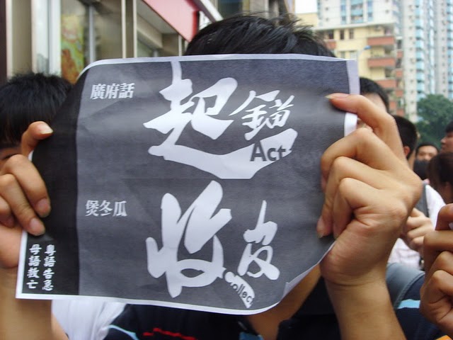 再 有 广 州 网 民 发 起 撑 粤 语 活 动 , 呼 吁 市 民 下 午 穿 白 色 衣 服 到 人 民 公 园 。 到 场 的 几 百 名 民 间 中 高 呼 「 广 州 人 讲 广 州 话 」 的 口 号 。