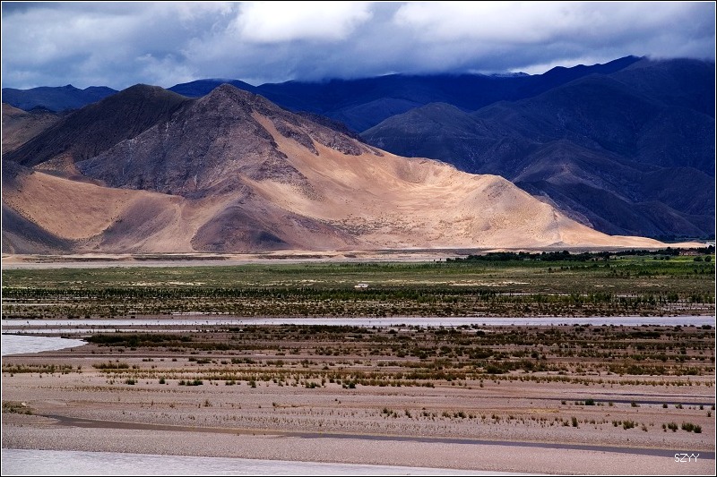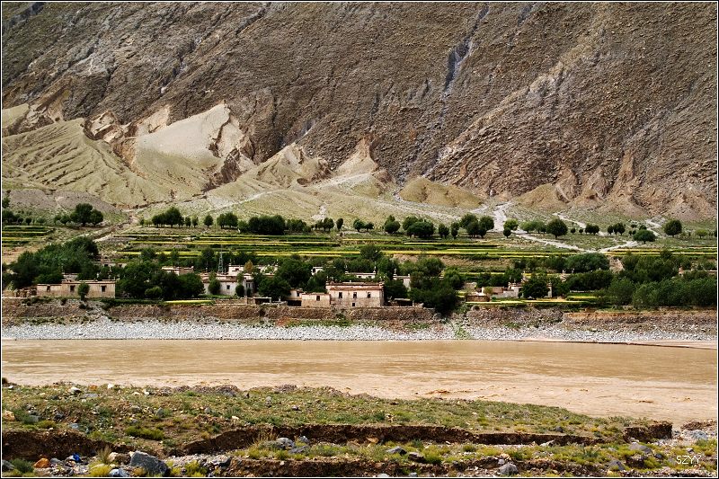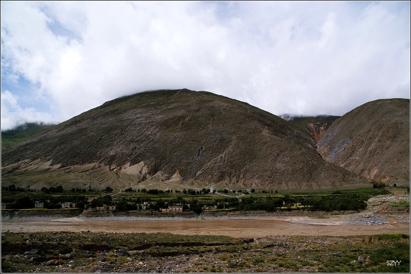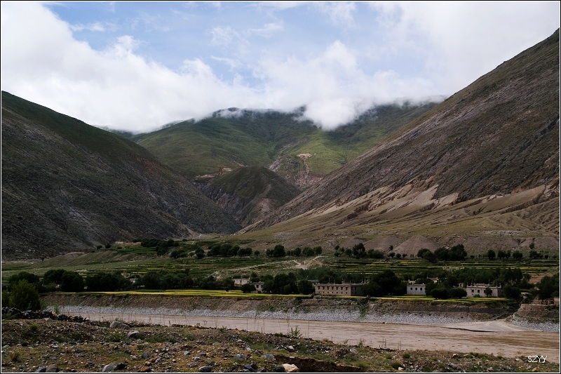 第十五天(7月28日)拉萨到日喀则 7点45起床,收拾停当,达咏等着开水烧开灌热水,9点10分出发,赶往日喀则,沿雅鲁藏布江的机场大道,车速都非常快,不久,交警把车辆都拦了下来,下车去问了问,原来是发限速卡,规定到达某个地点必须至少要用多少时间,后来才体会到,这一招比电子眼和雷达测速要管用的多,你开快了也没用,开快了就要停下车,干别的事把时间耗掉,然后才能到下一个值勤点盖章,否则警察就算你超速,我和老严轮流开车,好在我们经常停下车拍照,开的还不算快,有的时候远远看到警察值勤点了,时间用的还不够,就停下车,把时间用完,再开过去盖章。 从拉萨到日喀则跟林芝到拉萨相比,景色有天壤之别,林芝到拉萨,一路植被茂密,景色优美,高山深谷交替,落差巨大,往往达几千米。植被垂直分布十分明显,从热带到寒带的植物都能见到,从下到上,分布着热带雨林到温带阔叶林、混交林、针叶林、灌木林、高山草甸、苔藓直到什么也不长的雪线以上,一座座雪山。而拉萨到日喀则则是植物稀少,甚至满眼望过去,看不到一棵植物,起伏不大,但都是在高原山地行车,如果没有雅鲁藏布江相伴,看着跟在火星上一样,石头都是红色的,十分单调,感觉是不适合人居住的地方。可惜这些荒凉的地方没拍照片,后面遇到有了绿色才拍了几张照片. 中午在路边小店吃饭,看到一个开丰田4500的藏族司机,我问他去珠峰大本营的路况,他说以前开欧蓝德肯定没问题,现在定日那边在修路,要走别的路,加上下连阴雨,他开4500都不敢单车走,必须跟别的车搭伴,我们的欧蓝德可以肯定过不去,于是我们彻底放弃了去珠峰大本营的计划。 下午4点到了日喀则,海拔3950米,雨还在下,开车到了扎什伦布寺的停车场,问了问,扎寺5点关门,进去看肯定是来不及了,只好先住下,明天再来看吧,出停车场,一个藏族老头要收停车费,我们说我们刚停下,只是打听打听,连3分钟都不到,还要收费,老头什么都不听,只是必须交费,算了,不跟他争了,这地方没理可讲,交了钱,找酒店,最后在圣康饭店住下来。 外面继续下雨,我们先睡一觉,醒来天还大亮,这地方要到8点半以后才会黑天。嗓子干痛,头也有点儿疼,不知道是因为高原反应还是因为酒店新装修的甲醛气味影响,起来喝了两杯水,吃红景天,因为没有高原反应,我已经好多天没吃红景天了。怕感冒,又吃了两粒感冒药。达咏过来叫我们出去吃饭,背上摄影包,刚走了几步,就觉得发虚,所以决定不去了,打开窗户透气,躺一会儿,让他们几个回来的时候帮我带点儿吃的。 躺了一会儿感觉好多了,没事干,干脆整理一下日志,给LP打了一个电话,平时对她开车总是不大放心,叮嘱几句,让她注意点。女儿也很好,这就放心了。 去不了珠峰大本营,到日喀则已经不打算再往前走了,晚上我们决定明天直奔江孜宗山堡和羊卓雍措。