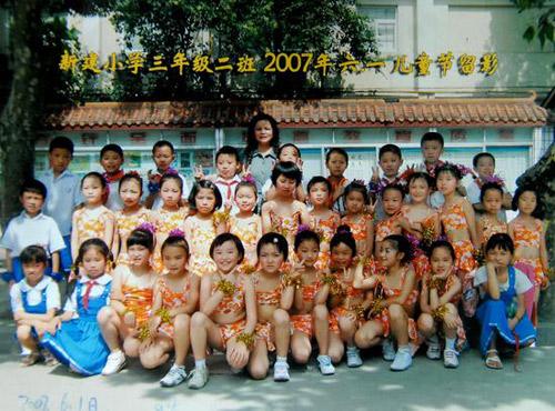 这张照片是都江堰新建小学四年级二班全体同学的集体照,原来的48名同学如今只有9名在地震后活了下来。