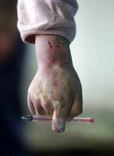 5月15日,地震过后的四川汉旺。东汽中学,一遇难女生手上仍紧紧攥着笔。