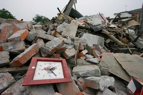 5月17日,四川省什邡市,定格的时钟。