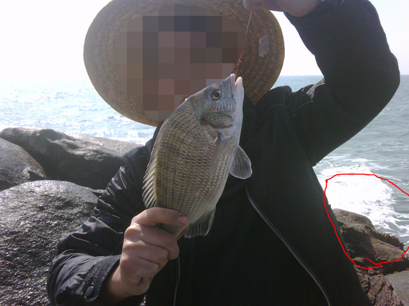 行家!!矶鞋穿在水泥地会打滑,换来换去很麻烦,还是穿水鞋,自己注意点就行了。其实电白的船家顶礁还是可以的,就是第一个登礁的人一定要敏捷,而且要帮手拉住船头,这点很危险,一定要身手利落才行。就是在图中红圈处登礁,要很注意,所以绝对不敢带他们去。