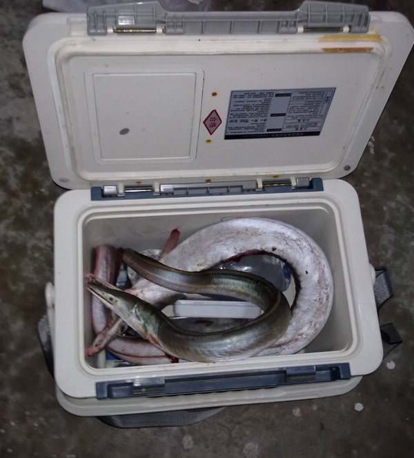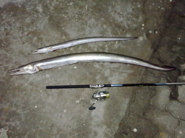 这东西不好搞,中三条都没一条能拉起来的.牙齿太厉害,线迅速给咬断,又长又滑溜,用抄网也捞不到,跑掉好多大的.